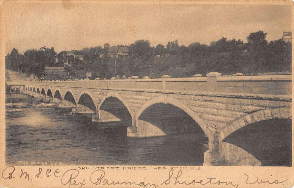 Appleton Wisconsin John Street Bridge Waterfront Antique Postcard K84400