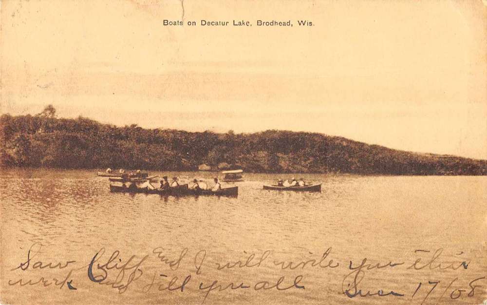 Brodhead Wisconsin scenic view boats on Decatur Lake antique pc Z44372