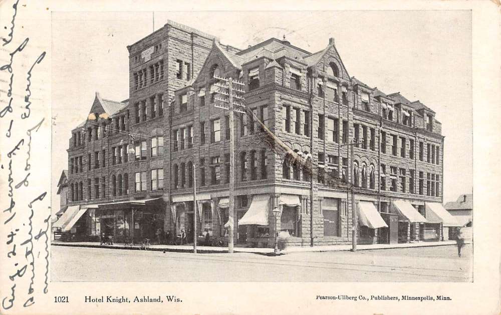 Ashland Wisconsin Hotel Knight Street View Antique Postcard K84454