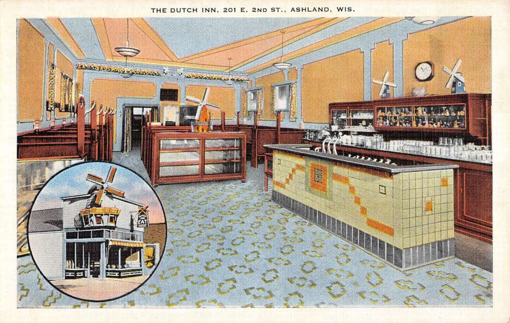 Ashland Wisconsin Dutch Inn Interior Antique Postcard K84455