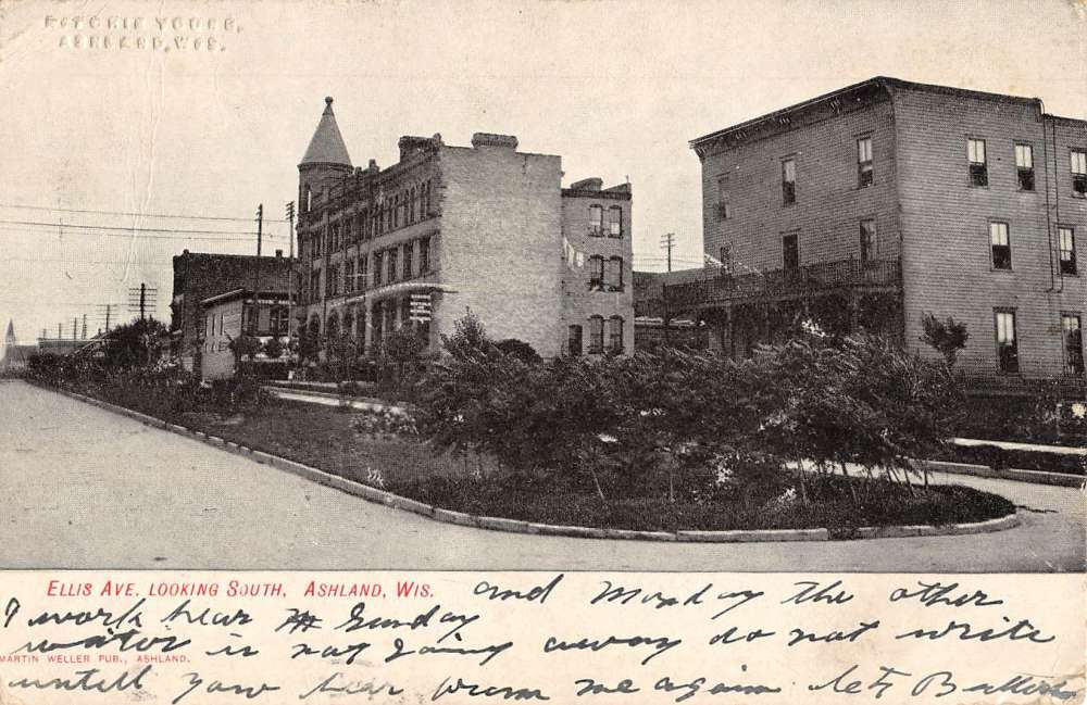 Ashland Wisconsin Ellis Avenue Street Scene Antique Postcard K84456