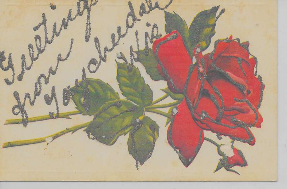 Taycheedah Wisconsin Greetings From red rose glittered antique pc Z44480
