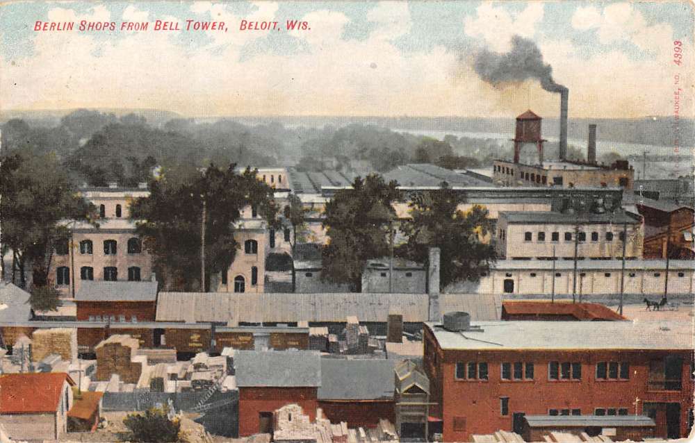 Beloit Wisconsin Berlin Shops From Bell Tower Antique Postcard K71566