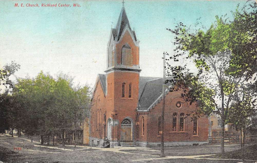 Richland Center Wisconsin ME Church Street View Antique Postcard K71567