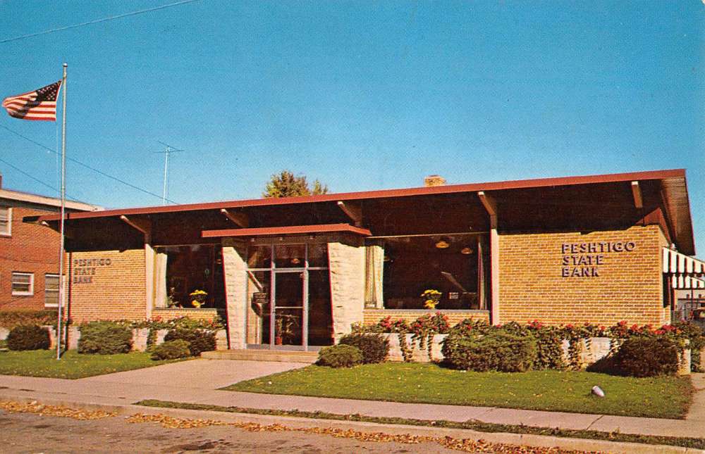 Peshtigo Wisconsin State Bank Street View Vintage Postcard K71998
