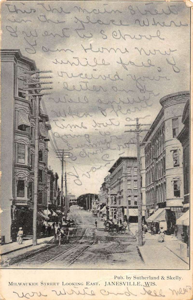 Janesville Wisconsin Milwaukee Street Scene Antique Postcard K72086