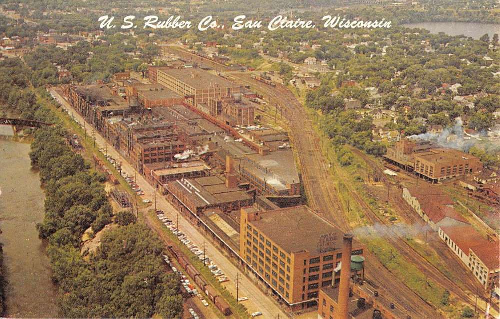 Eau Claire Wisconsin Rubber Co Birdseye View Vintage Postcard K62596