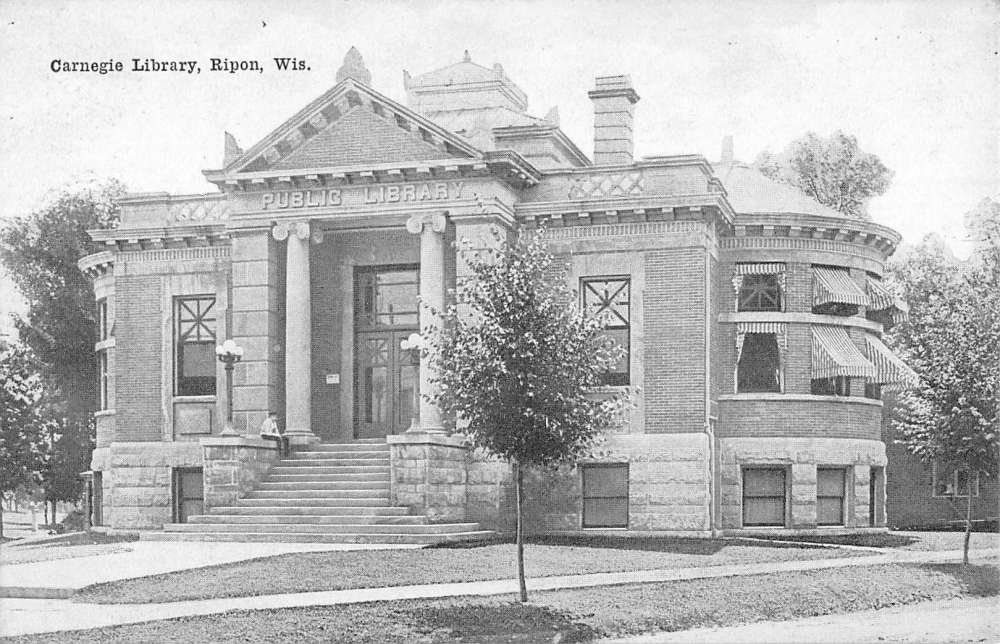 Ripon Wisconsin Carnegie Library Street View Antique Postcard K63230