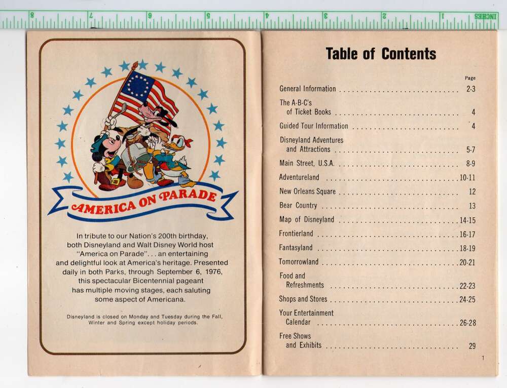 1976 Disneyland Hand Held Guide Bicentennial Park Maps 29 Pages AA112684