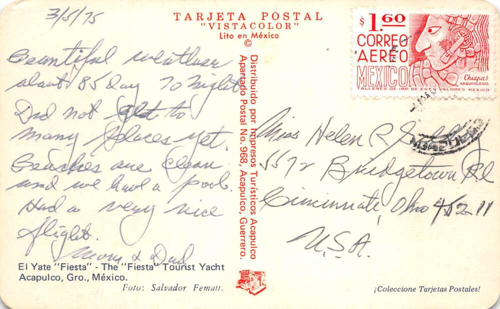 Acapulo Mexico The Fiesta Tourist Yacht Ship Vintage Postcard AA112297