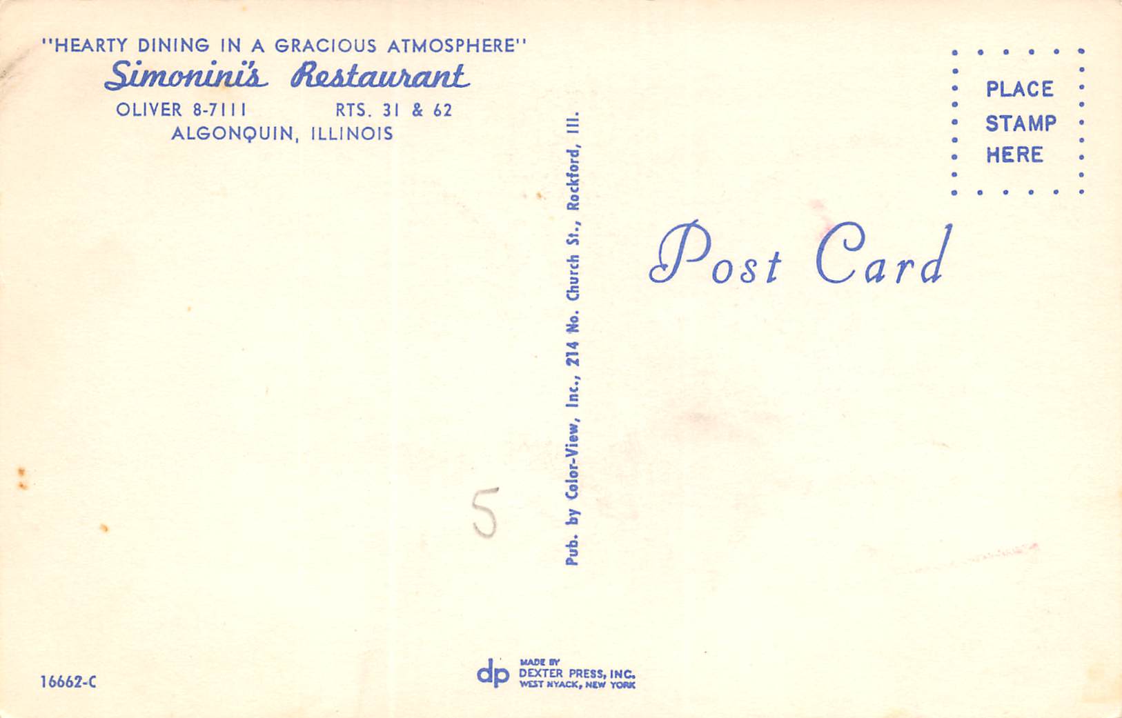 Algonquin Illinois Simonini’s Restaurant, Multi-View Chrome, Vintage PC U23602