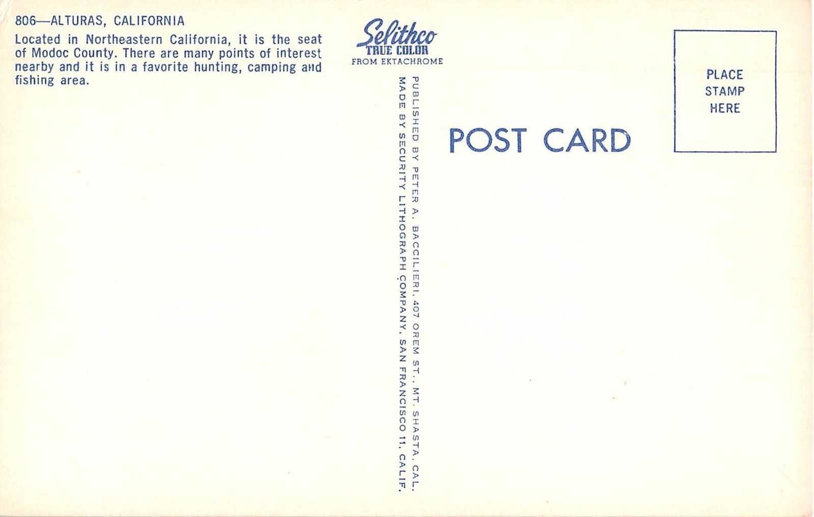 Alturas California Street Scene Vintage Postcard (J13440) Good Condition.