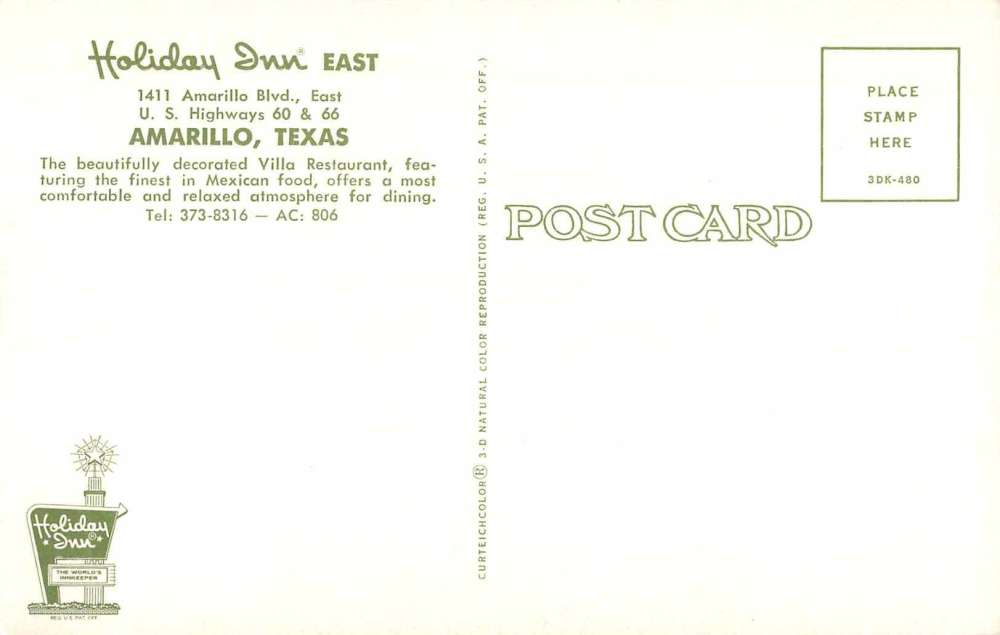 Amarillo Texas Holiday Inn East Villa Restaurant Vintage Postcard J60603