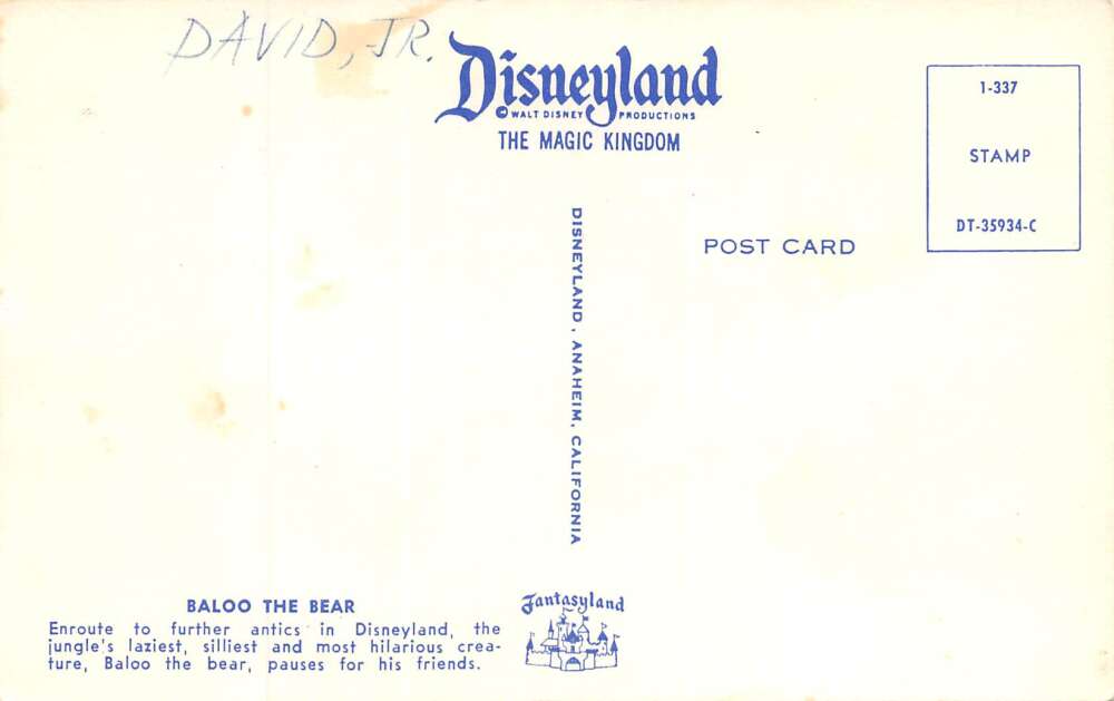 Anaheim California Baloo The Bear, Disneyland, Vintage Postcard U24521