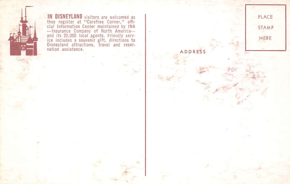 Anaheim California Disneyland Carefree Corner Vintage Postcard AA80384
