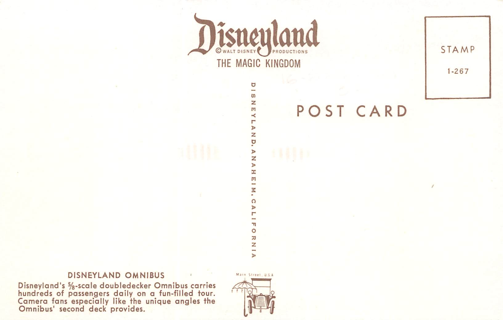 Anaheim California Disneyland Omnibus, Photochrome Vintage Postcard U13011