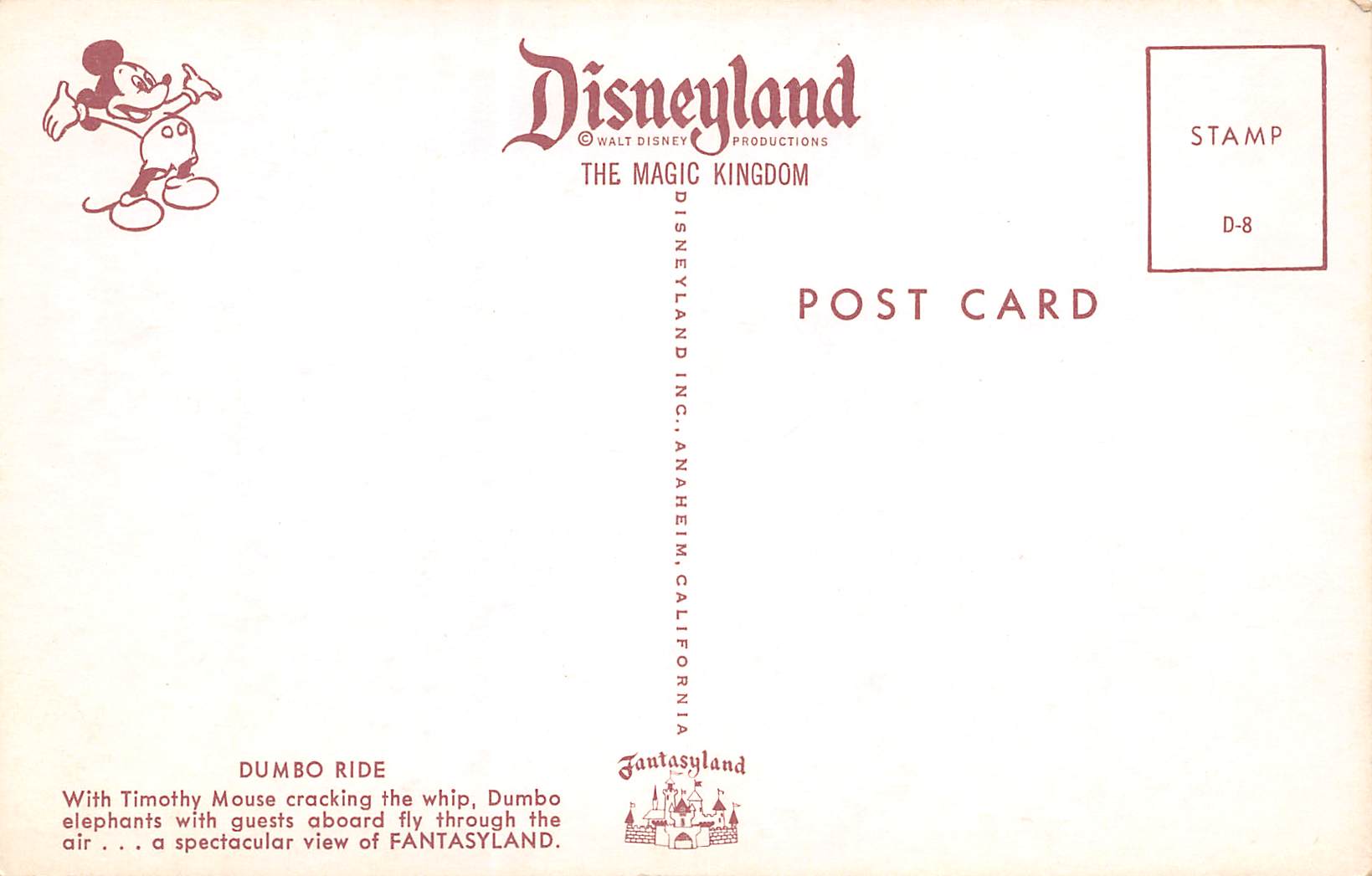 Anaheim California Dumbo Ride, Disneyland, Vintage Postcard U12927