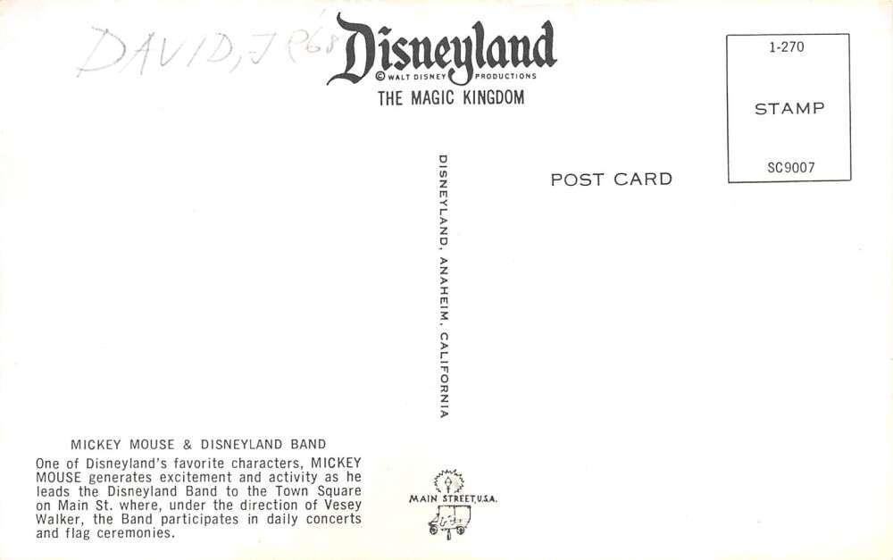 Anaheim California Mickey Mouse & Disneyland Band, Vintage Postcard U24517