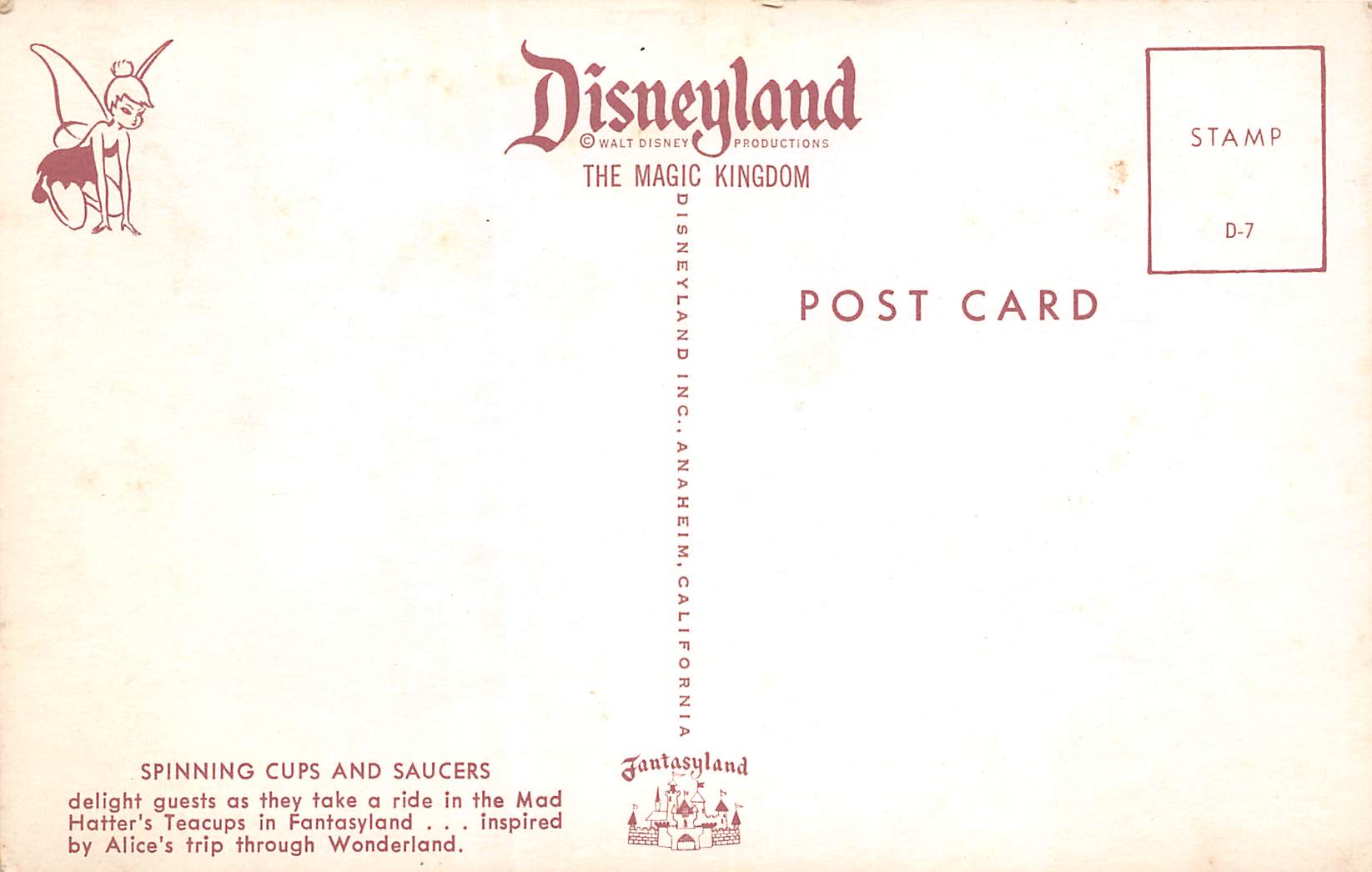 Anaheim California Spinning Cups & Saucers Ride, Disneyland,Vintage PC U12928