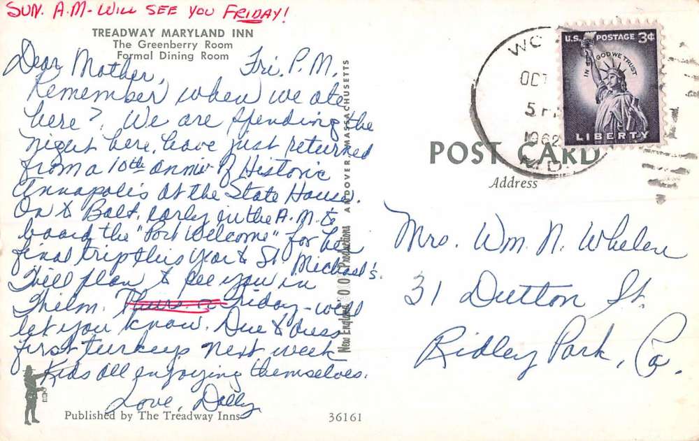 Annapolis Maryland Treadway Inn Greenberry Room Vintage Postcard K86959