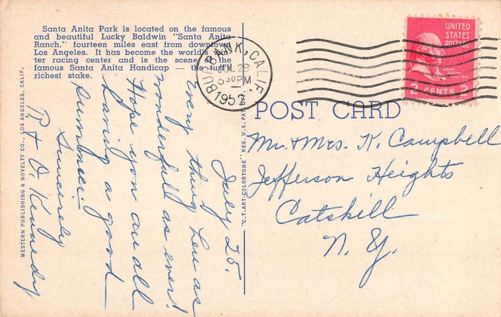 Arcadia California Santa Anita Park Handicap Day Antique Postcard K93452