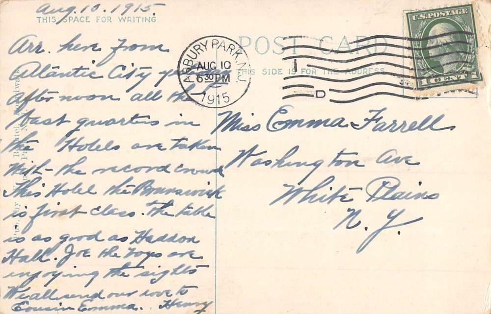 Asbury Park New Jersey Brunswick Hotel Street View Antique Postcard K93037