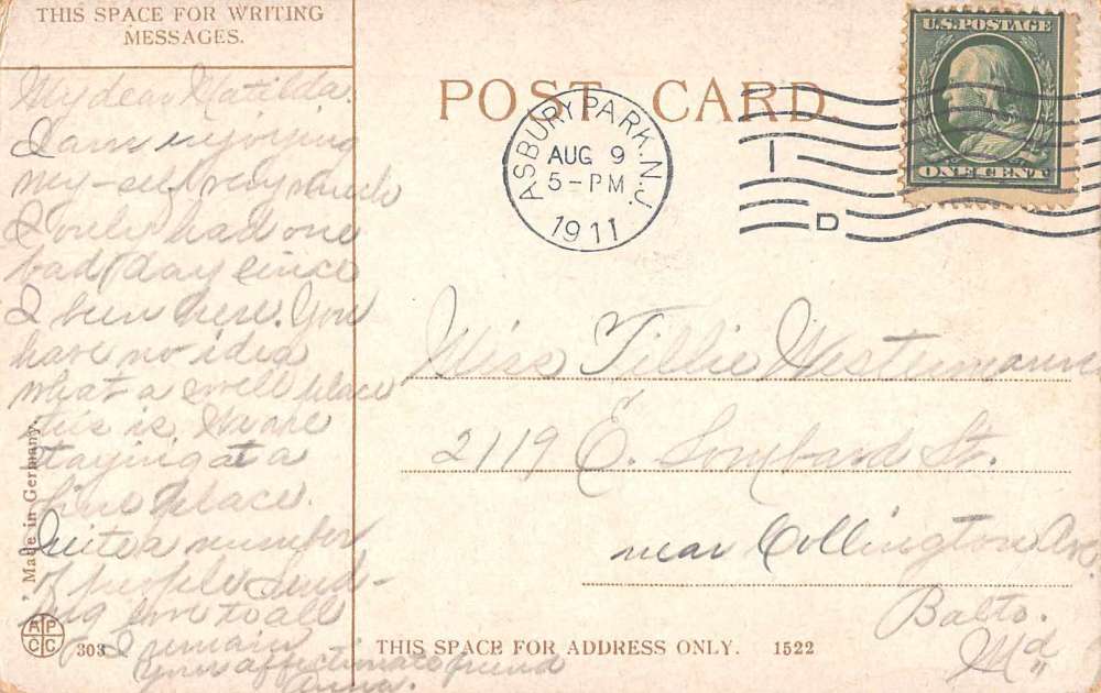 Asbury Park New Jersey Lafayete Hotel Antique Postcard J59324