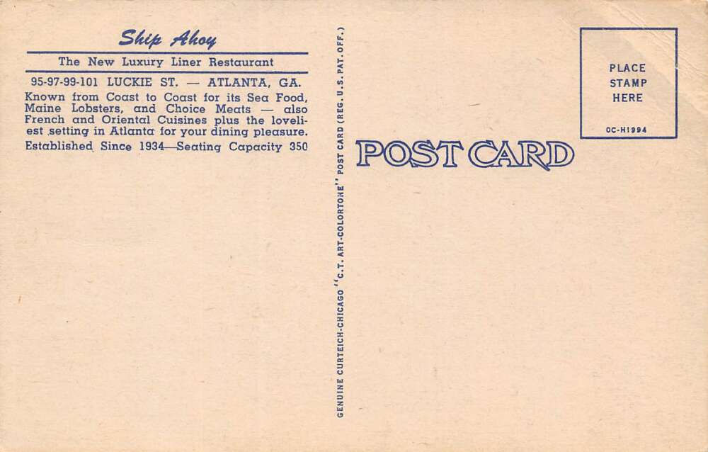Atlanta Georgia Ship Ahoy Restaurant, Multi-View Linen Vintage Postcard U15611