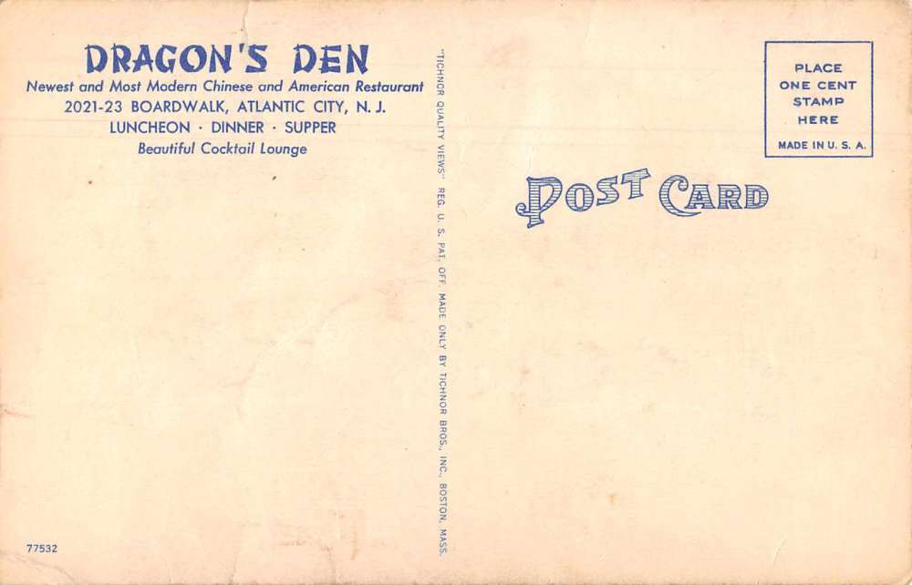 Atlantic City New Jersey Dragon’s Den Restaurant and Bar Linen Postcard J74032