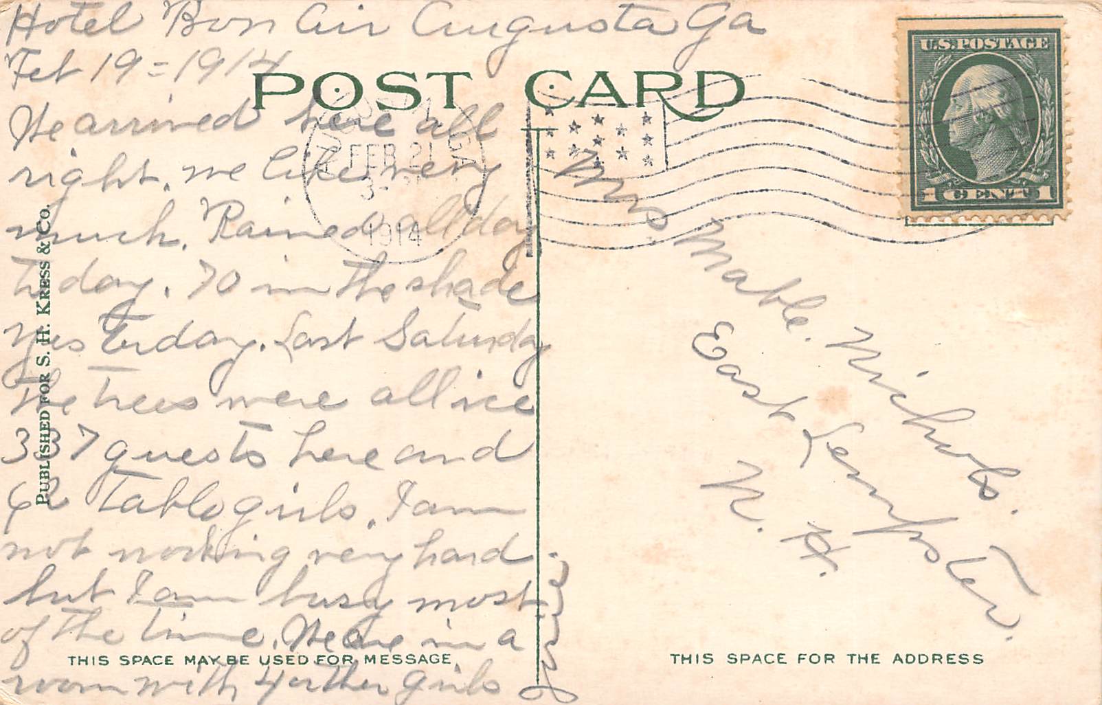 Augusta Georgia Broad St., Looking W. From 8th St., Color Lithograph PC U11327