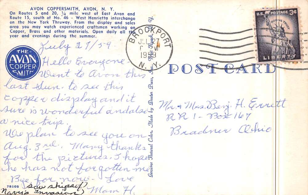 Avon New York street view of Avon Coppersmith vintage pc DD8181