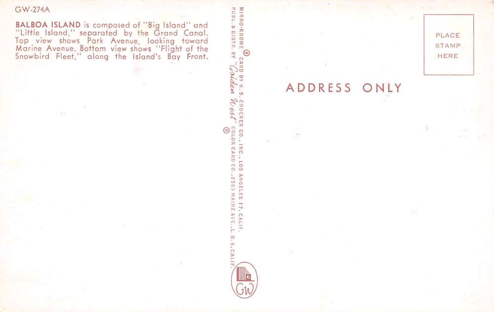 Balboa Island California Greetings From…, Newport Harbor, Vintage PC U20469
