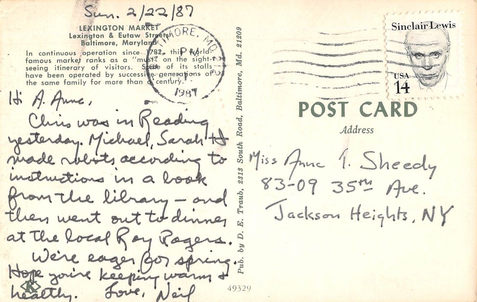 Baltimore Maryland Lexington Market Vintage Postcard (J21540) Good Condition.