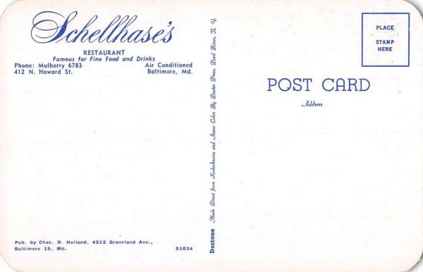 Baltimore Maryland Schellhases Restaurant Interior Vintage Postcard K103871