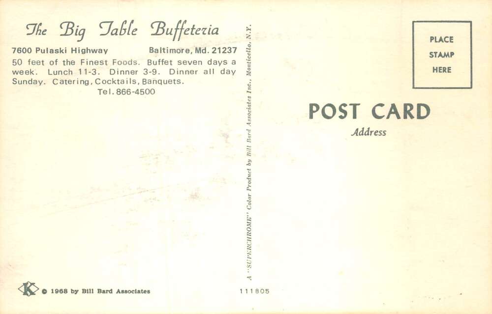 Baltimore Maryland The Big Table Buffeteria Restaurant Postcard AA107103