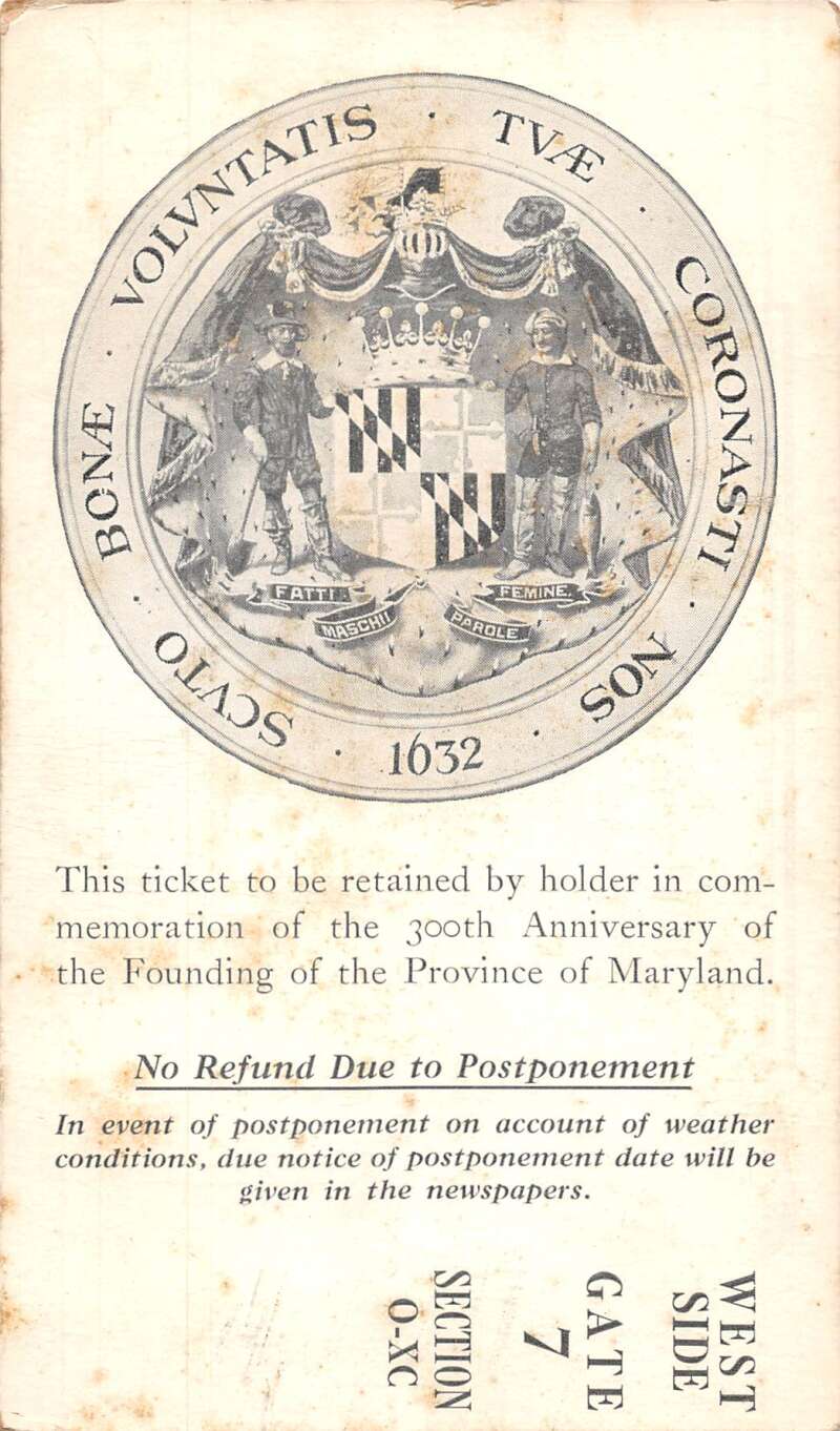 Baltimore Stadium 1934 Soul of Maryland Pageant Ticket Stub Vintage AA106324