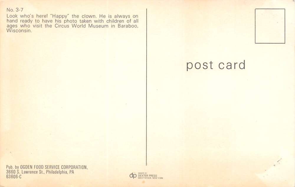 Baraboo Wisconsin Happy The Clown, Circus World Museum, Vintage Postcard U11520