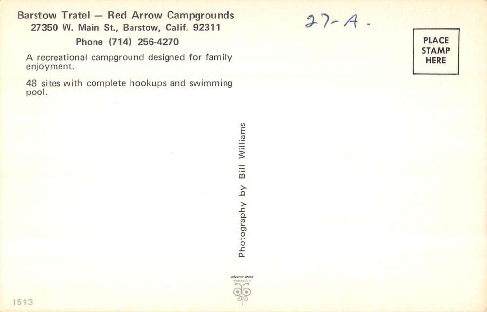 Barstow California view of Tratel-Red Arrow Campgrounds vintage pc ZA441373