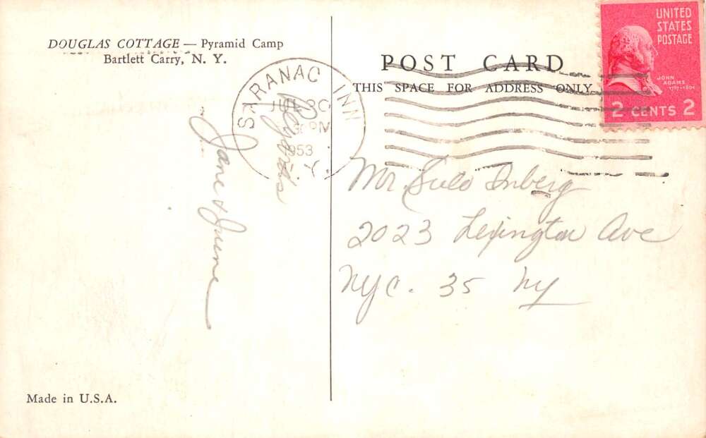 Bartlett Carry New York Douglas Cottage Pyramid Camp Vintage Postcard AA108526