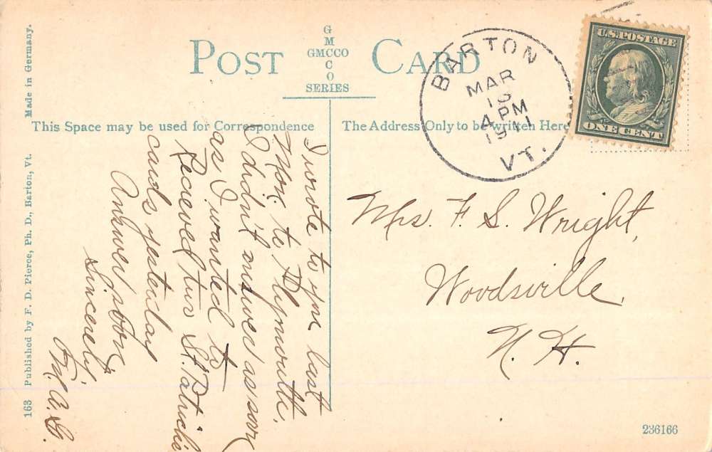 Barton Vermont Main Street Scene Residential Antique Postcard K18188