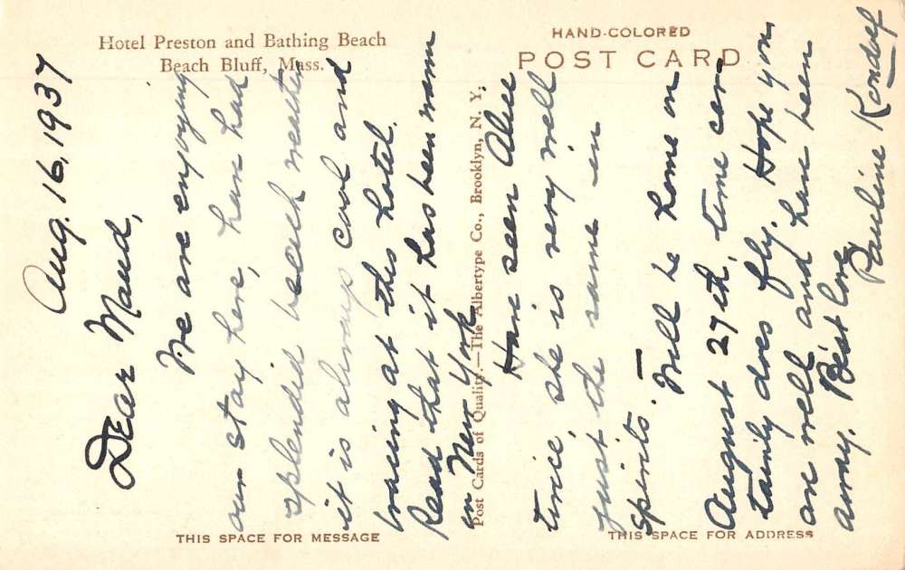 Beach Bluff Massachusetts Hotel Preston Bathing Beach Antique Postcard K61373