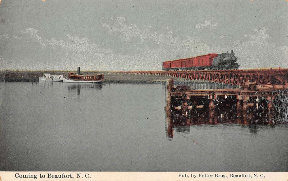 Beaufort North Carolina River Train Bridge Boats Scenic View Postcard AA49733