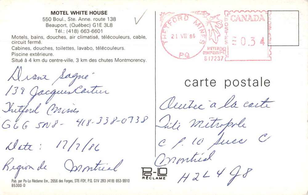 Beauport Quebec Canada Motel White House Multiview Vintage Postcard J77123