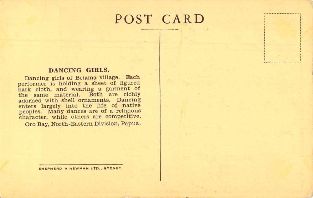 Beiama Village Papua Oro Bay Dancing Girls Antique Postcard J80401