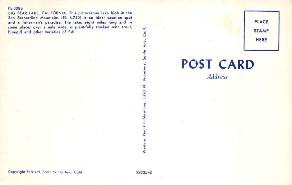 Big Bear Lake California Greetings Fishing Scene Vintage Postcard AA87210