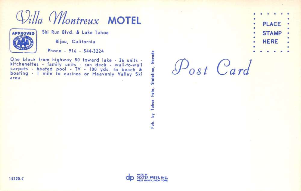 Bijou California Villa Montreux Motel Swimming Pool Vintage Postcard AA107100