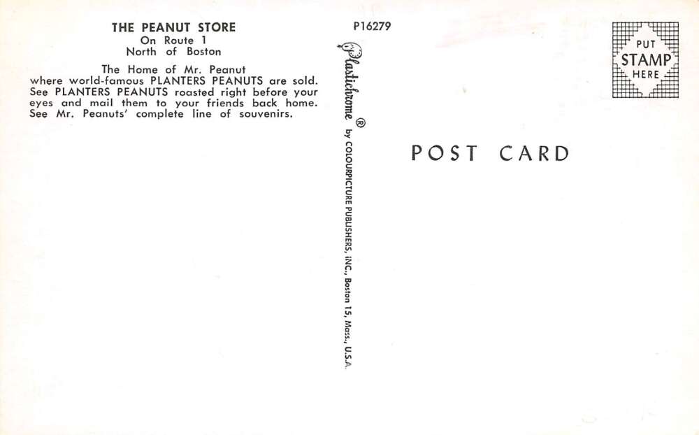 Boston Massachusetts Planters Peanut Store, Photochrome Vintage Postcard U16404