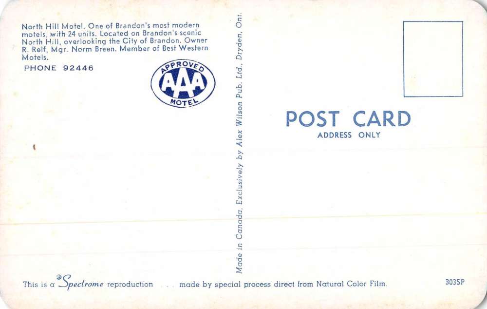 Brandon Manitoba Canada North Hill Motel Interior Vintage Postcard K94556