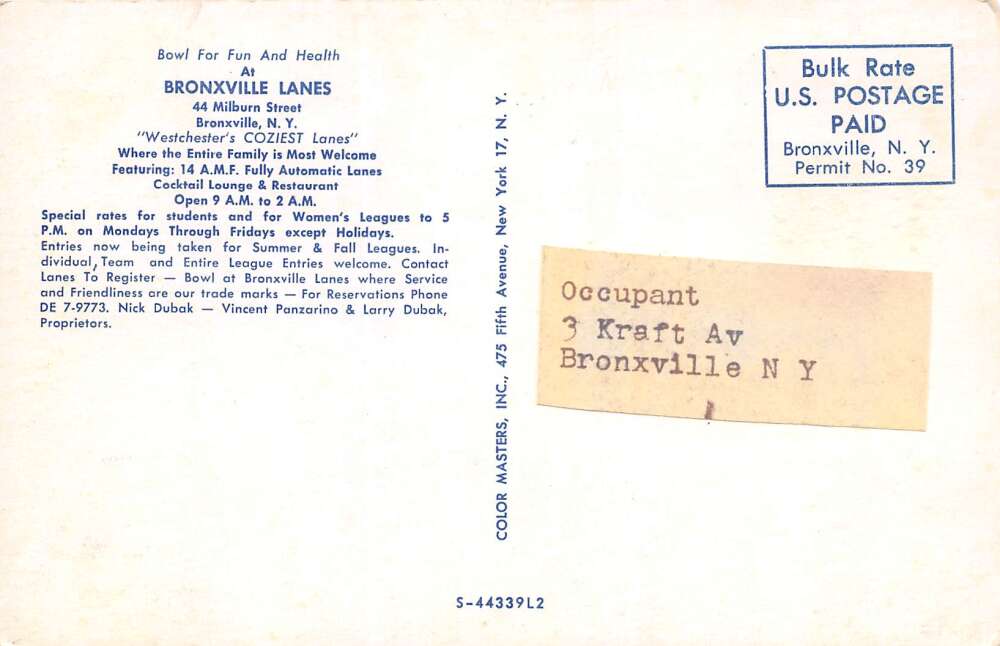 Bronxville New York Bronxville Lanes, Multi-View Chrome Vintage Postcard U11141