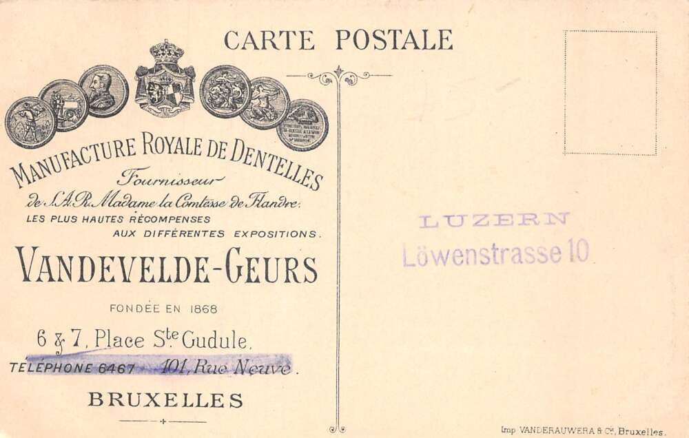 Bruxelles Brussels Belgium Vandevelde Geurs Royal Lace Factory Postcard AA59058